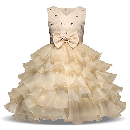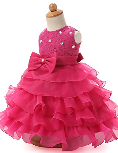 Beautiful diamond embedded in the chest, Flower Layered Tulle Design, Big Lovely bow on the front, lacing bow and movable wear-resistant closure zipper on the back. Suitable for wedding party, holiday party, First Communion, ceremony, baptism, birthday, pageant etc.