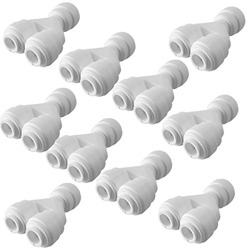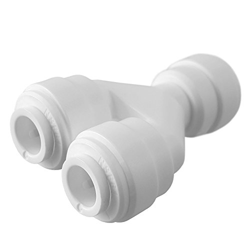 PureSec 2017 TWS1414 mini white plastic quick fitting Tube divider two way splitter Y shaped connector for tubing OD 1/4" used for RO system refrigerator ice maker coffee machine Pack of 10)