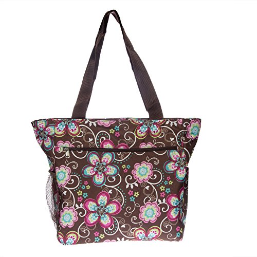 -. Binding : Lage -. Brand : World Traveler -. ClothingSize : One Size -. Color : Brown Flower -. Department : womens -. EAN : 0840002130431 -. Feature : Perfect for just about anything! / Sturdy drop handles, side slip pocket, side net pocket, exterior zippered pocket / Great for the beach, gym, shopping, school, carryon lage, weekend or overnight travel / Fully lined interior / 13.75" x 18.5" x 6.5" -. Label : Gen SH -. Manufacturer : Gen SH -. Model : SH-143532-FBA -. PackageQuantity : 1 -. ProductGroup : Apparel -. ProductTypeName : LAGE -. Publisher : Gen SH -. Size : One Size -. Studio : Gen SH -. Title : Print Shopper Beach Tote Bag (Brown Flower) -. UPC : 840002130431