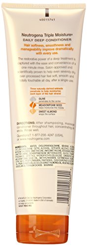 Studio : Neutrogena Publisher : Neutrogena Binding : Misc. Product Description Neutrogena Triple Moisture Daily Deep Conditioner. The daily conditioner with deep moisture benefits for soft, smooth, totally touchable hair all day. Developed to treat extra dry or over-processed hair. Hair softness, smoothness and manageability improve dramatically with every use. The restorative power of a deep treatment is captured with the ease and convenience of a one-minute rinse. 0