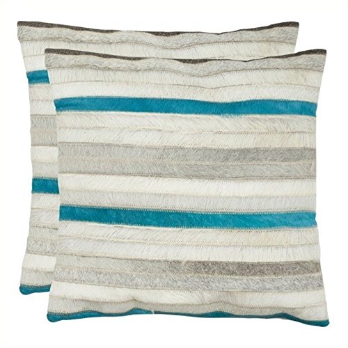 Add geometric pizzazz to your sofa or bed with the textural Quinn pillow, with horizontal bands of cowhide in white, grays and a shot of teal blue. This casual but sophisticated stripe pillow is backed in solid suede.