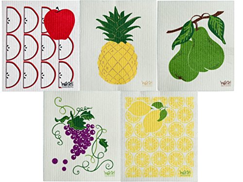 Wet-It Swedish Dishcloth Set of 5 - 5 Different Fruits - NEW