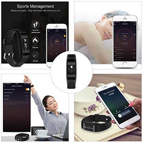 Yuntab Smartband smartwatch Sport Intelligente armband Schrittzahler Aktivitatstracker Fitness Tracker Aktivitats Schlaftracker fur Android und IOS wasserdicht Bluetooth(schwarz)
