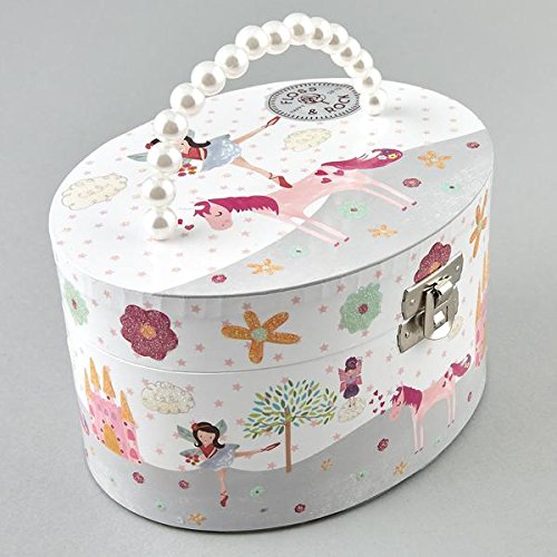 Studio : Floss Rock Publisher : Floss Rock Binding : Toy Product Description This beautiful and whimsical oval-shaped jewelry box has a sweet fairy and unicorn theme. Wind up the key at the back, open the lid and the star twirls as the song "Over the Rainbow" plays. Size is 6" x 5" x 4.5". Also included is a small packet of magical fairy shimmer dust! Floss Rock is a company in Blackpool, England, where they create unique and fabulous gifts and toys for children. Their products are "designed beside the seaside", and are unique, beautifully-designed, educational and fun. 0