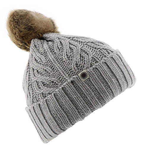 Studio : UGG Publisher : UGG Binding : Apparel Product Description *Stay warm and stylish all winter with this cute and cozy hat *Chunky fishtail cable-knit crown and ribbed cuff *Luxe Toscana sheepskin pom-pom at top *Fabric is 50% merino wool, 30% nylon, 20% acrylic *Merino wool's smaller fiber diameter prevents the itching associated with normal wool *One size fits most 0