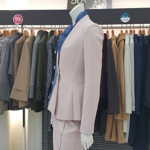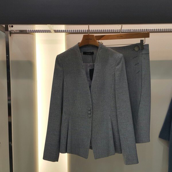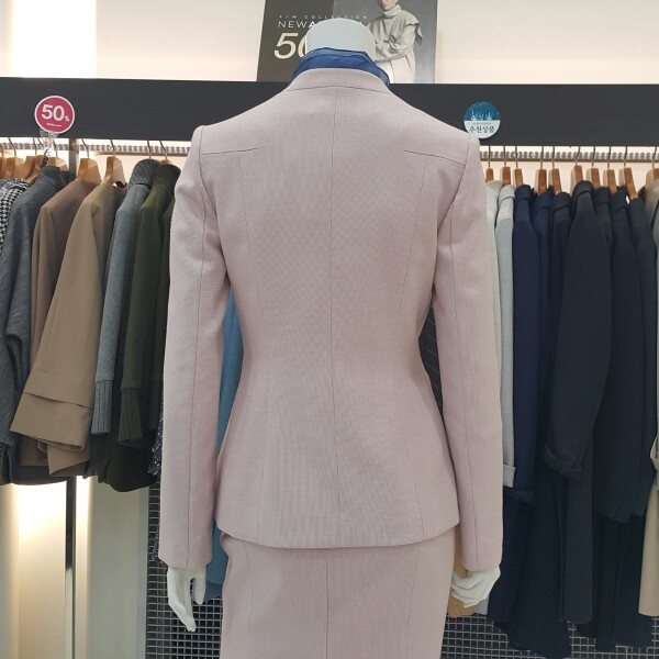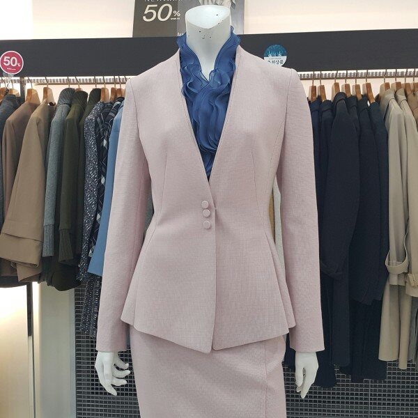 심플한 디자인의 허리 라인이 여성스런핏의 노카라 자켓입니다. 스커트와 함께 정장세트로 구입 가능합니다. 다양한 아이템으로 연출해 보세요~~