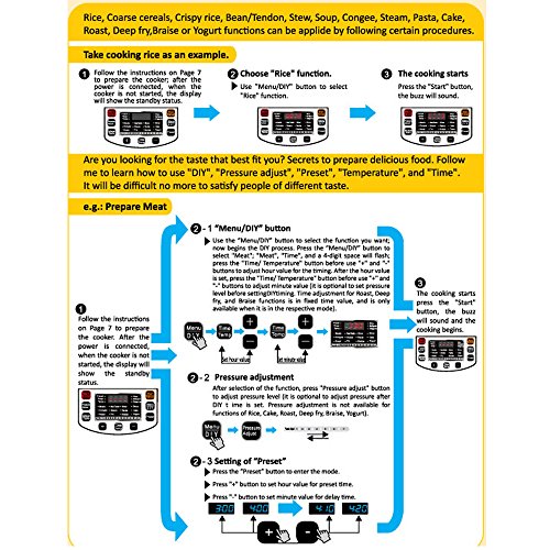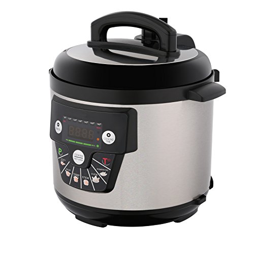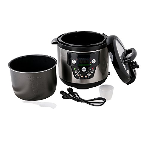 Pansdore 7-in-1 Programmable Pressure Cooker with English Speech Function, 6Qt/1000W, Non-stick Cooking Pot and Stainless steel Shell. Package with measure cup / rice spoon [New Version]