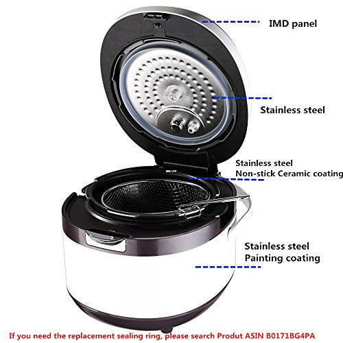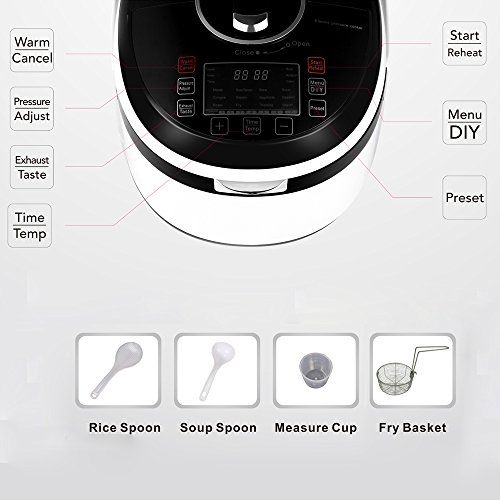 Pansdore 8 in 1 Multi-function Electric Pressure Cooker with Sealing Ring, 5l/6 Quarts, 1100w. Package with Rice Spoon, Soup Spoon, Measure Cup, Fryer Basket