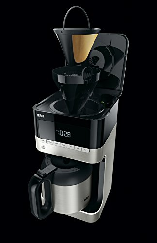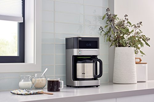 Braun's Brew Sense 10-cup Drip Coffee Maker features a thermal carafe that keeps your coffee hot and flavorful for up to 6 hours. Each satisfying cup begins with Braun's unique Pure Flavor system to ensure your coffee is made at the right temperature and brewing time. The innovative carafe lid seals in flavor and the anti-drip system allows you to pour any time during the brewing cycle. And with an automatic 24-hour programmable timer, you won't have to wait to enjoy that first sip the moment you want it. Choose "regular" or "bold" on the brew strength selector to customize your coffee just the way you like it. Plus, the Braun gold tone filter, unlike paper, enhances the flavor of your coffee by allowing essential oils to reach your cup. The Brew Sense's elegant design features an easy-access control panel, convenient cord storage, smaller footprint and lower profile. With the Brew Sense, you know you're going to have a satisfying cup of savory goodness time after time.Feature