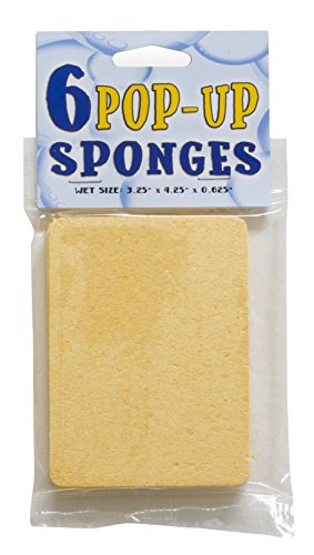- Sponges expand or pop-up to full size when water is added (2.75 x 3.875 x .625-inches); once sponge expands, it won’t return to original compressed size