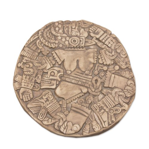 NOVICA Ceramic Archaeological Decorative Plaque, Grey 'Aztec Moon Goddess'
