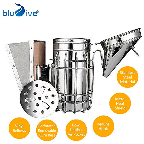 Blu7ive Bee Hive Smoker , Stainless Steel Beekeeping Equipment with Metal Heat Shield and Mount Hook for Beekeeping