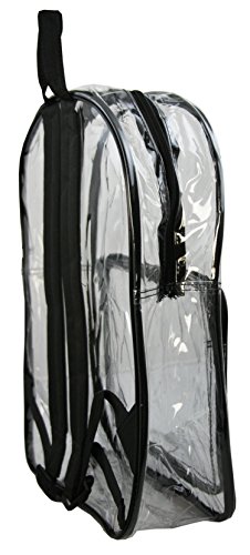 -. Brand : Ensign Peak -. Color : Black -. EAN : 0783713658187 -. Feature : Clear Vinyl with black trim / Great for high security locations / Lightweight and Durable / Adjustable padded shoulder straps / Size: 12"W x 16"H x 5"D -. ProductGroup : Apparel -. ProductTypeName : LAGE -. Size : medium -. Title : All Clear Vinyl Backpack -. UPC : 783713658187