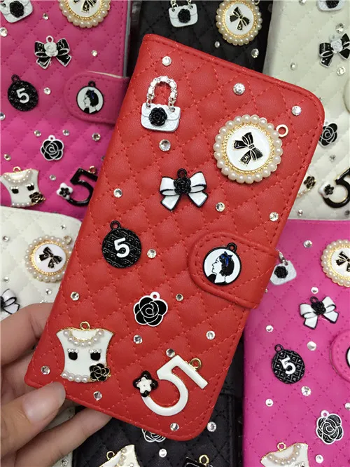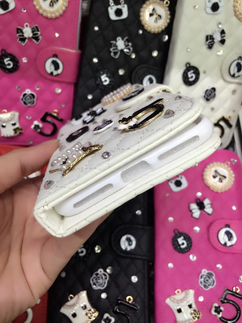 Features:Diamond Camellia Flower Handbag Pearl Bowknot Flip Wallet Leather
