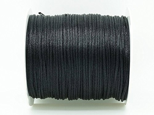 BLACK 1mm Bugtail Satin Cord Shamballa Macrame Beading Nylon Kumihimo String (210ft Spool)