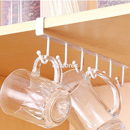 AMAZZANG-6 Hooks Cup Holder Hang Kitchen Cabinet Under Shelf Storage Rack Organiser Hook (WHITE)