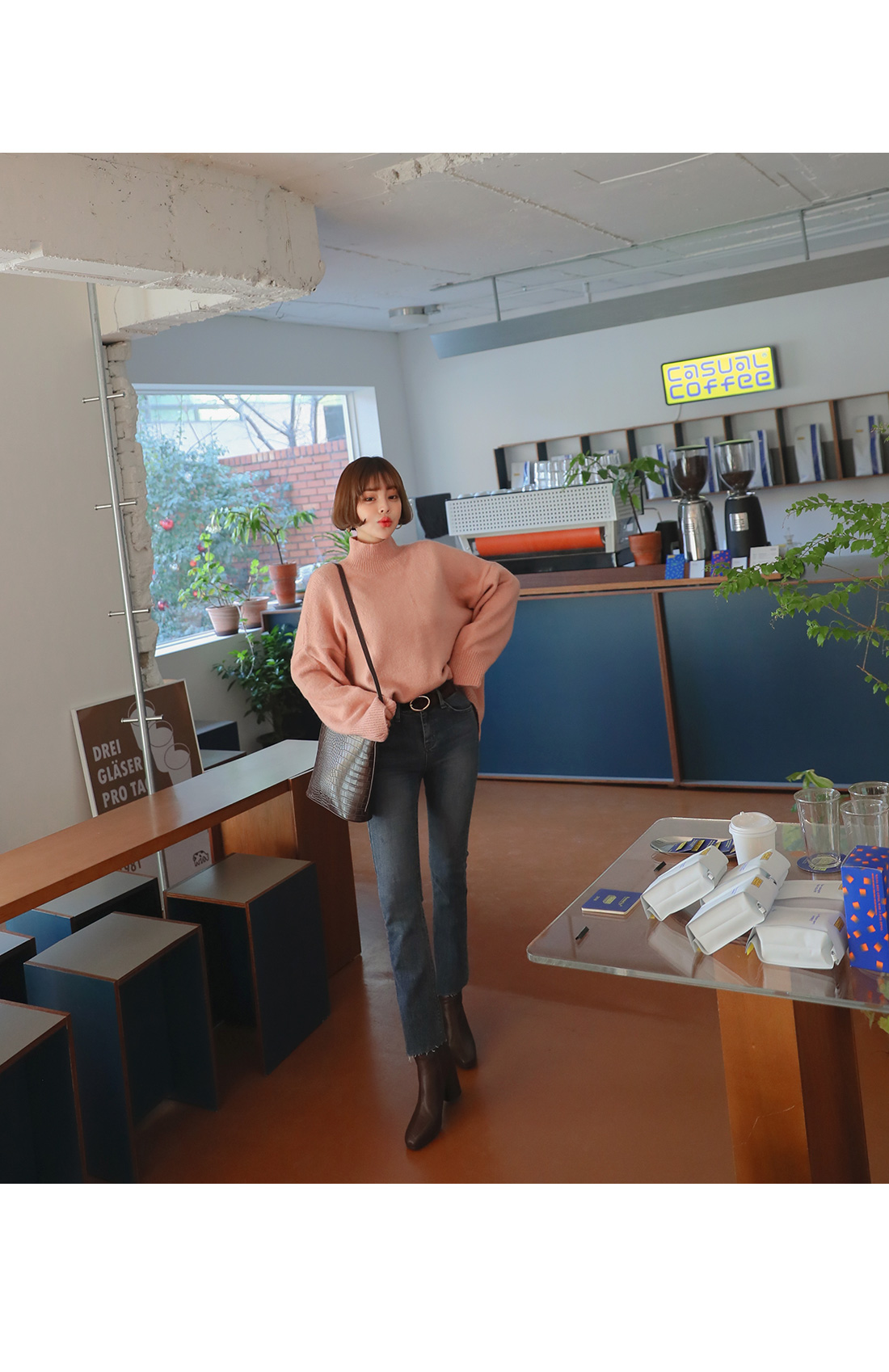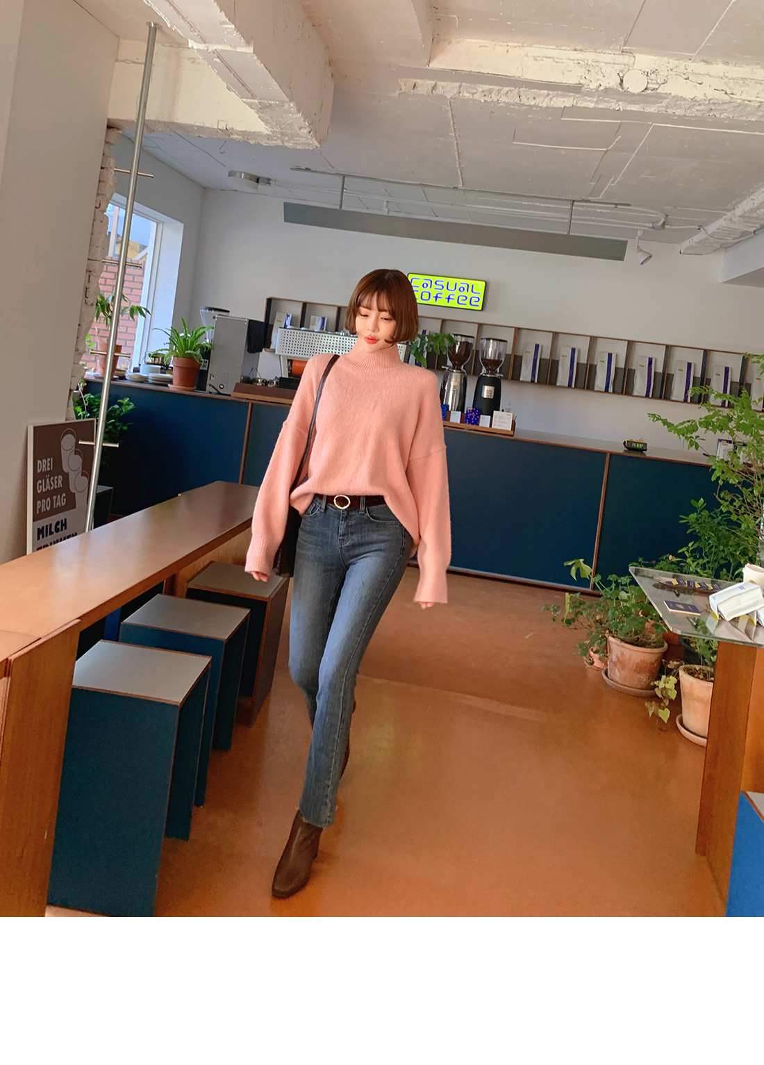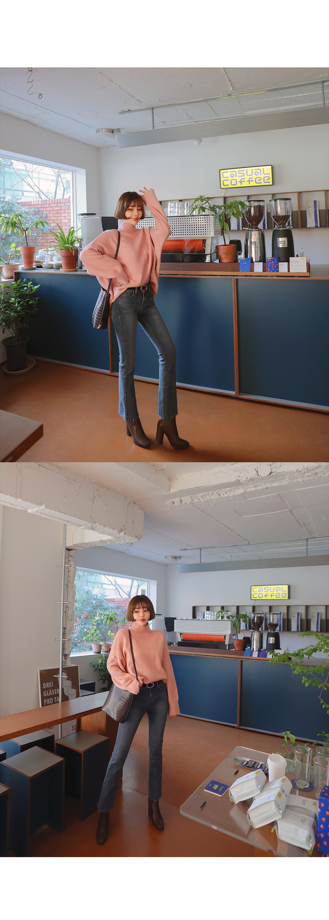 그 밑으로 퍼지는 부츠컷 라인으로 세련된 라인을 연출할 수 있어요.