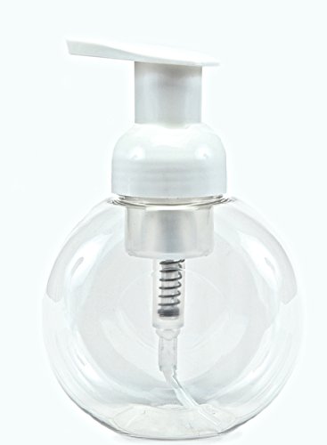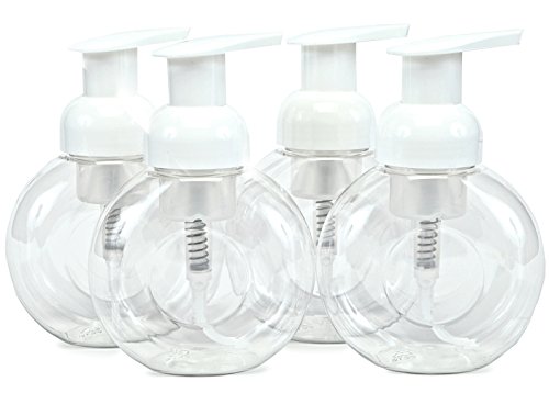 - 4 - 8.5 oz, Circular, Clear, Plastic Foaming Soap Bottles, with White Dispenser Pumps