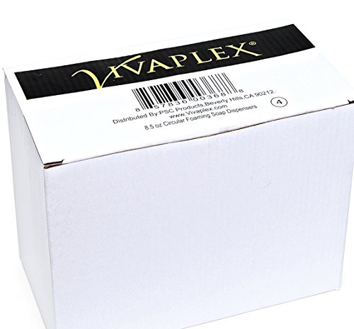 Vivaplex, 4, Clear, 8.5 oz (250 ml), Circular, Plastic Foaming Soap Dispensers, with White Pumps