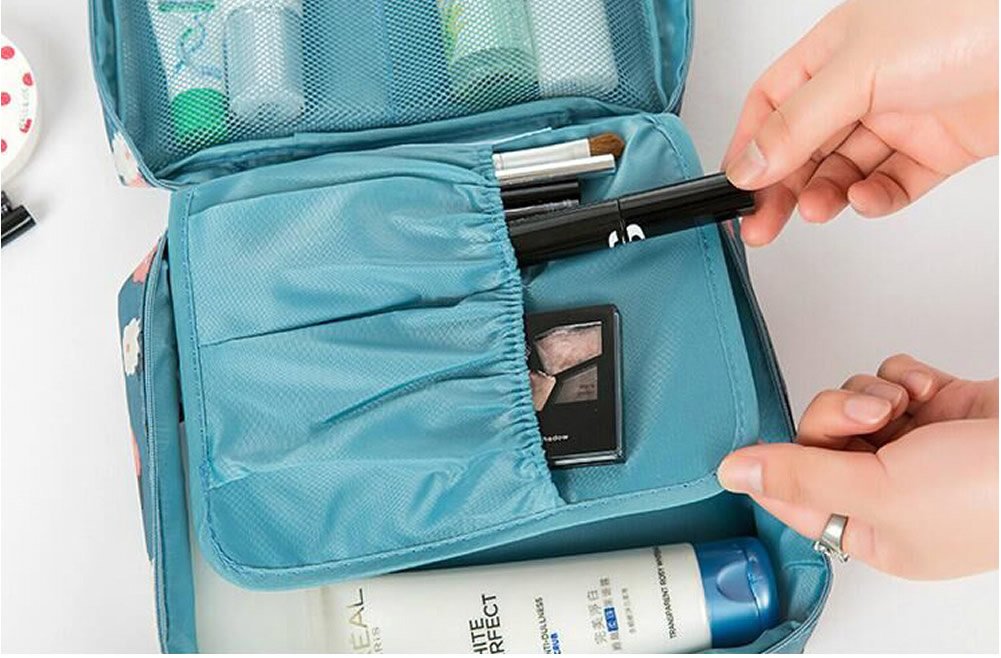 As well as a makeup pouch, you can include shampoo, conditioner, body wash, toothpaste, toothbrush, contact solution etc as a travel pouch.