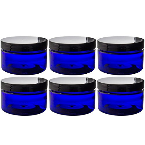 Cobalt Blue 4 oz PET Plastic (BPA Free) Refillable Low Profile Jar (6 pack) + Spatulas and Labels
