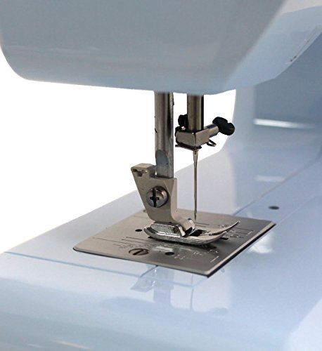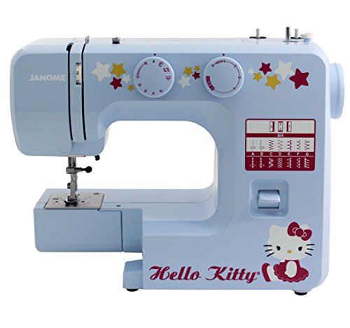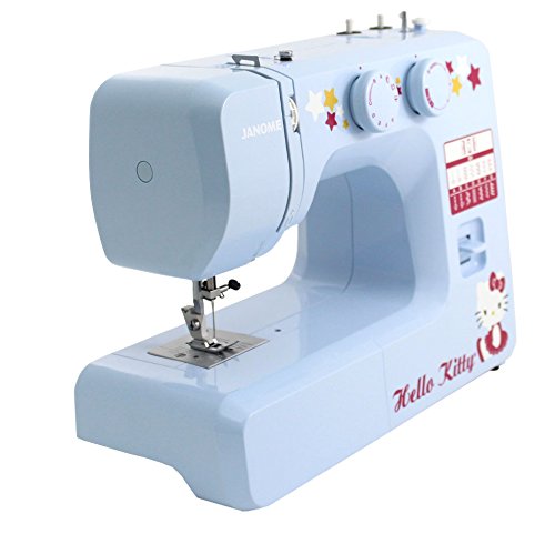 Janome Blue Hello Kitty Sewing Machine with Bonuspack! Just the basics! The Hello Kitty 15312 is a great machine for someone who is just starting out, or who wants a machine that can tackle any of their basic sewing needs. Bonuspack Includes: Two Packs of Organ Needles, 10 Plastic Bobbins, Bobbin Storage Case and Janome Sewing Machine Tote in Blue and Gray Plaid Pattern. Features: Front loading oscillating hook bobbin Metal Frame 12 Built-in stitches 1 Four-step buttonhole Manual thread tension control Snap on presser foot 3-Piece feed dog Free Arm Easy Reverse lever Push/Pull Bobbin Winding Extra High Presser Foot Lift Stitch Selection dials Built in sewing light Maximum stitch width: 5mm Maximum stitch length: 4mm Included Accessories: Bobbins (4) one in machine Darning Plate Seam ripper Set of needles Sliding buttonhole foot Adjustable blind hem foot Zipper foot Zig zag foot Foot control Instruction manual Janome Manufacturer's warranty: 5 Year mechanical 2 Year Electronic 1 Year laborFeature