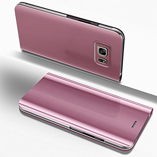 PHEZEN Galaxy S7 Edge Case, Luxury Mirror Makeup Case Plating PU Leather Flip Folio Wallet Case [Kickstand] Magnetic Closure Full Cover Case for Samsung Galaxy S7 Edge (Rose Gold)