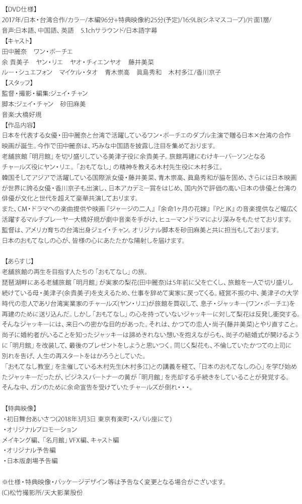 名優たちが贈る、オリジナル日台合作映画が誕生!!日本のおもてなしの心が、皆様の心にあたたかな陽射しを届けます。