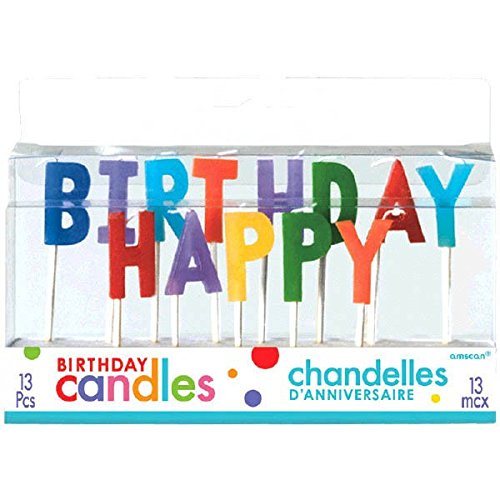 Party Time Molded Letter Birthday Toothpick Candles, Pack of 13, Multi Primary , 3" Wax, Toothpick