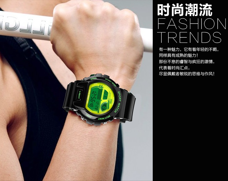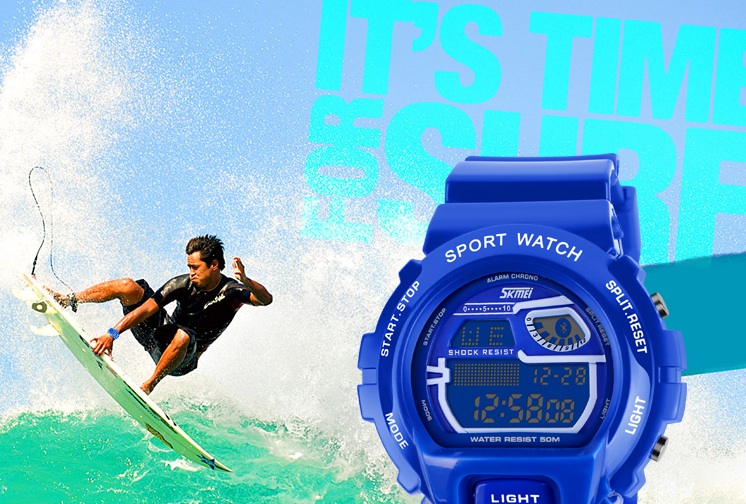 | High Quality Material Strap jam tangan terbuat dari silicon yang kokoh dan ringan. Bagian belakang jam terbuat dari besi stainless steel sehingga tidak akan berkarat jika terkena keringat.