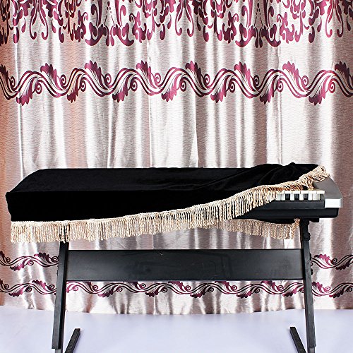 -. Feature : Made of pleuche, soft and durable. / Approx.120cm/47.2in in length and 57cm/22.4in in width. / Soft material, protect 61 note electronic keyboard from scratch and dust. / Resistant to dirt, dark color won't show dirt easily. / Decorated with beautiful fringees to satisfy your good taste.