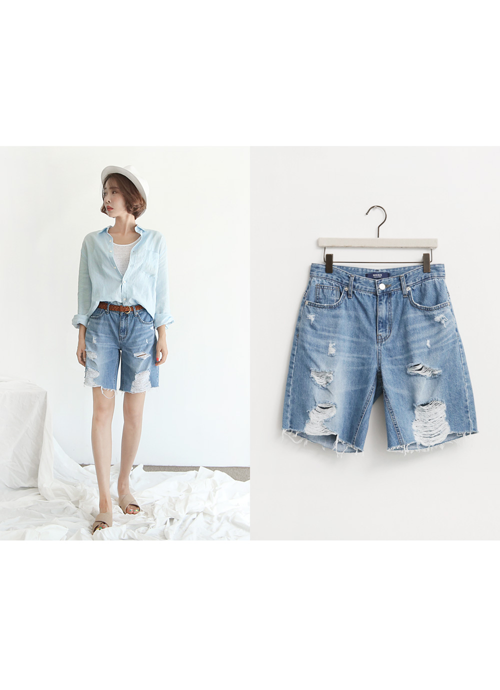 트렌디한 워싱이 돋보이는 데님팬츠입니다