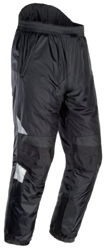 Studio : Tourmaster Publisher : Tourmaster Product Description Waterproof and breathable Rip Stop Nylon shell with sealed seams is rated MVM 5000 for maximum breathabilityPolyester mesh lining enhances air circulation and comfortWaterproof/breathable stretch material panels above knees and in the inseam provide flexibility and comfortHigh-density nylon seat panel provides added strength and minimizes slippingErgonomic, 4-panel knee design provides increased comfort in the riding positionTwo zippered hand pockets for convenient storage3M Scotchlite reflective panels increase nighttime visibilitySized to be worn over motorcycle riding apparelIncludes a pant-to-jacket zipper attachment that matches perfectly with the Tour Master Sentinel Rain JacketElastic waistband and high-rise rear panel seal out the elementsExtra long zippered and gusseted leg cuff with Velcro flap closure allows for ease of dressing. 0