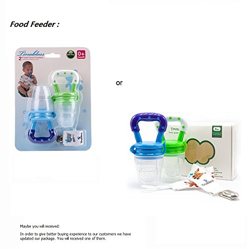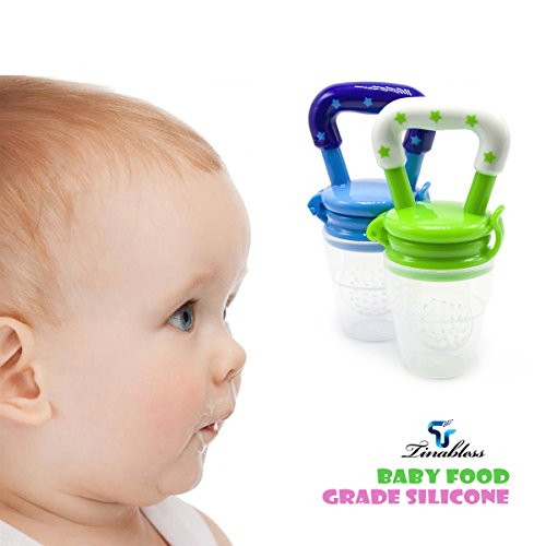 Tinabless Baby Food Feeder, Fresh Fruit Feeder Infant Teething Toy Nibbler Teether Pacifier and Silicone Pouches for Baby with Clip M (2Pcs)
