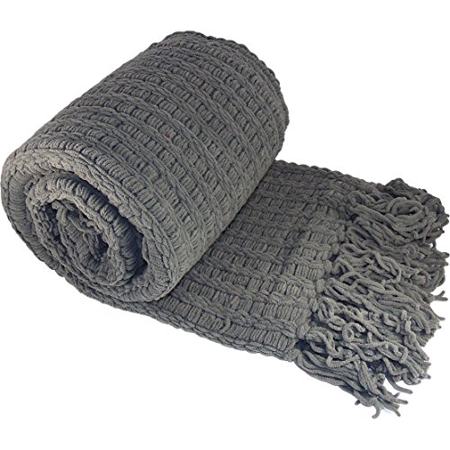 BOON Space Yarn Knitted Throw Couch Cover Sofa Blanket, 50" x 60", Charcoal Grey