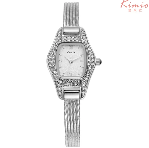 | [해외] Kimio 2017 브랜드 석영 시계 스테인레스 스틸 밴드 팔찌 시계 라인 석 시계 여성 방수 시계 relogio feminino |