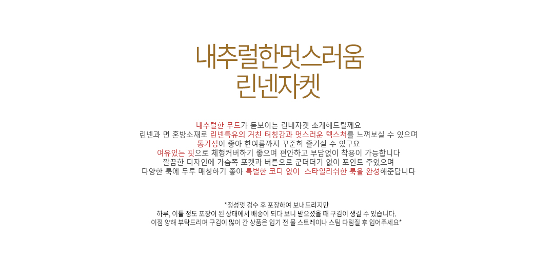 소재특성상 원단의 줄은 원단자체에 생긴 줄이므로 불량이 아니라는 점 참고해주세요