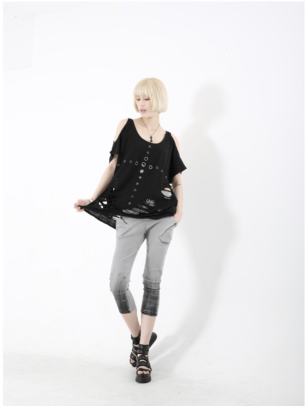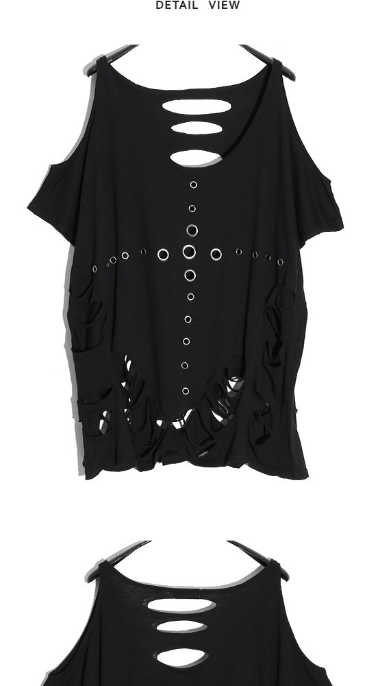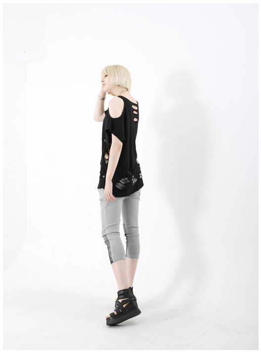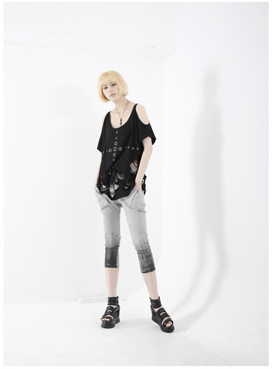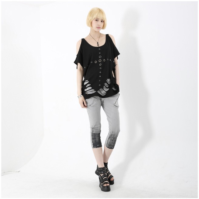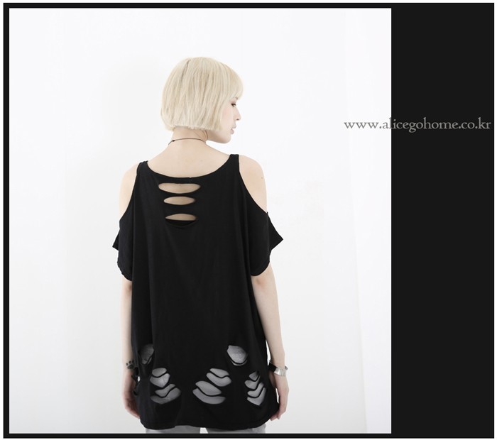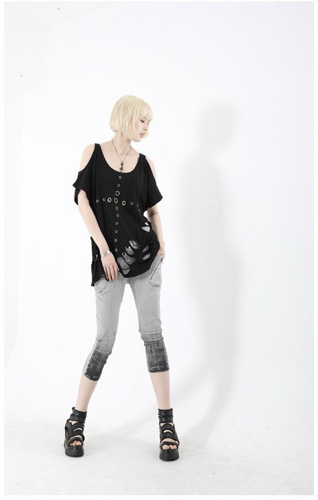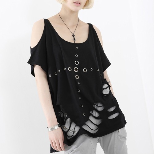 商品名:トップス レディース Tシャツ ダメージ オフショルダー 個性的 夏 2018 モード系 個性的 40代 ファッション