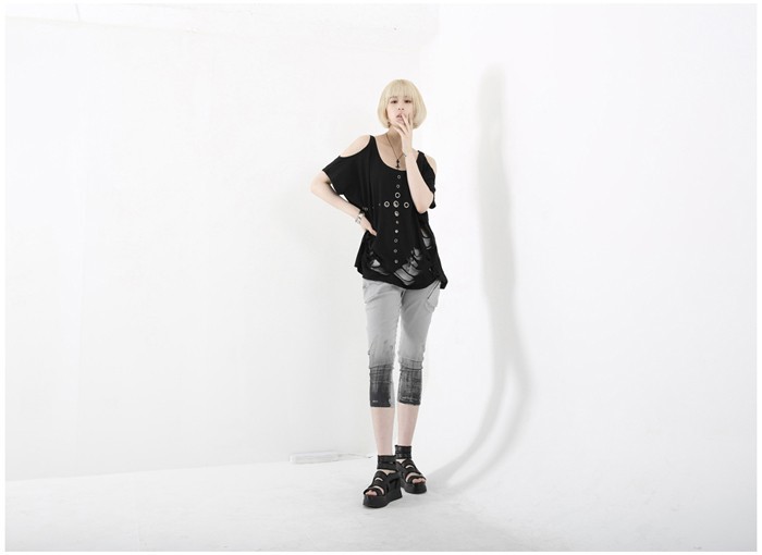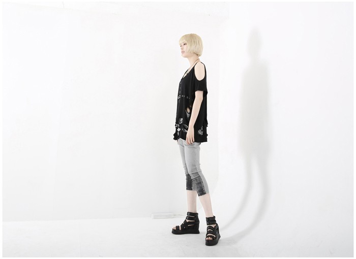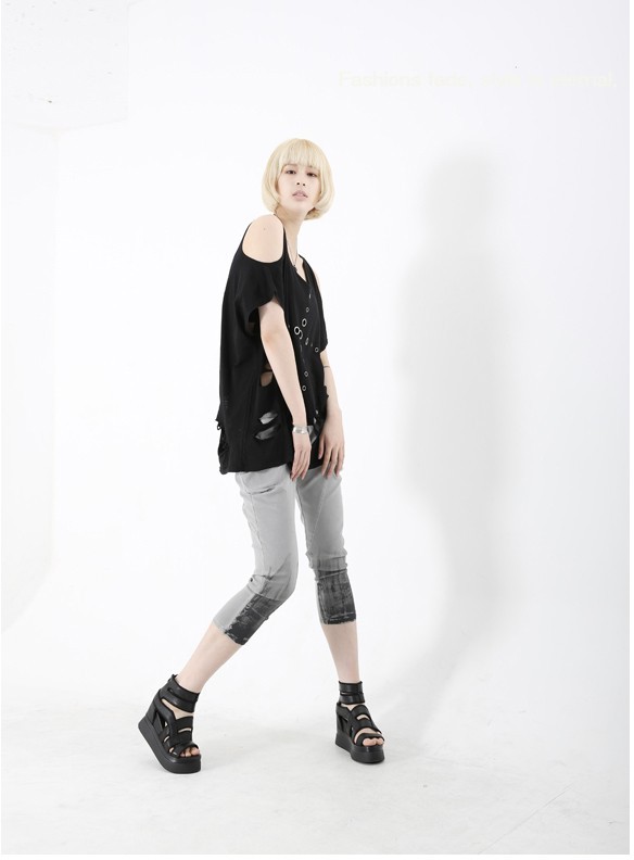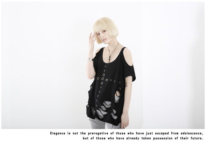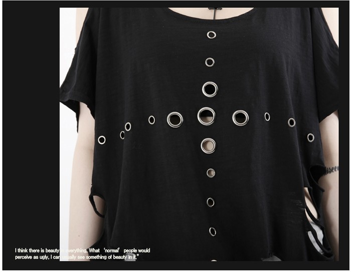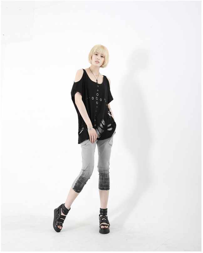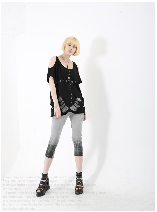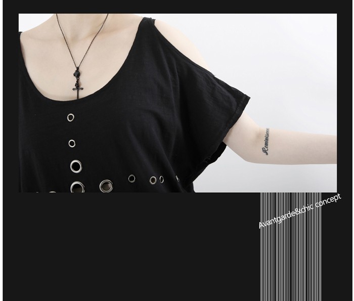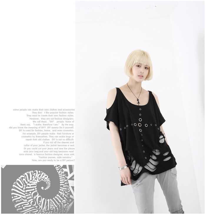 商品名:トップス レディース Tシャツ ダメージ オフショルダー 個性的 夏 2018 モード系 個性的 40代 ファッション