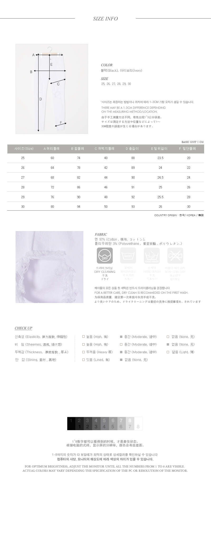 트렌드에 알맞은 헤짐디테일과 군더더기없이 깔끔한 핏감의 스키니팬츠 아이템이예요~^^ 베이직한 디자인에 헤짐디테일이 더해져 한층 더 스타일이 돋보이는 코디룩은 연출할 수 있답니다~ 적당한 두께감으로 계절에 구애없이 다양한 코디매치를 할 수 있는 활용도 높은 아이템이예요~^^ 스키니팬츠 하나로 스타일이 돋보이는 코디룩을 완성해보세요~