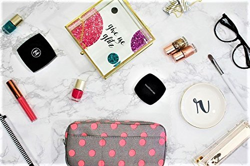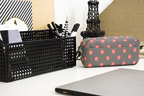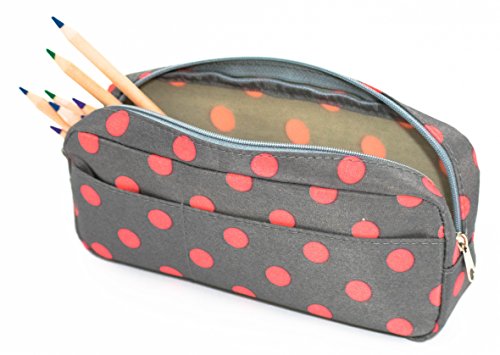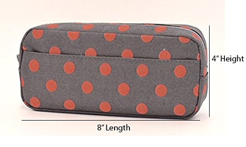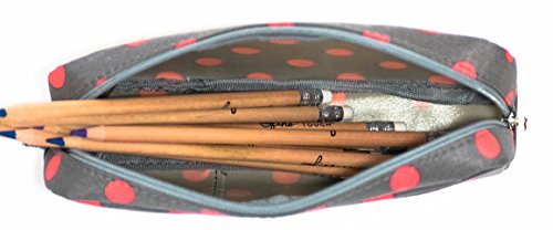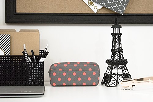 Blue Monaco Cute Pencil Case for Girls - Pen Pouch - Makeup Bag - Gray with Pink Polka Dots - 8 Inch By 4 Inch