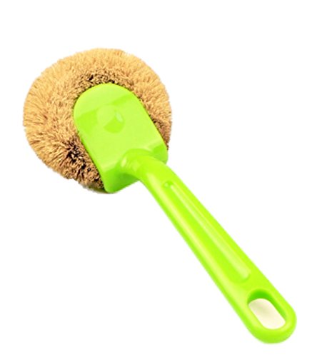 Natural Palm Cleaning Brush for elbow Grease Cleaning with extended stiff handle (Green)