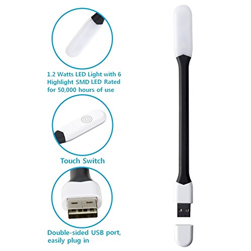 360°Flexible, bendable body, this compact mini size and Double-sided usb port design is portable enough for you to use in different occasions such as reading, writing, working, night light ect.