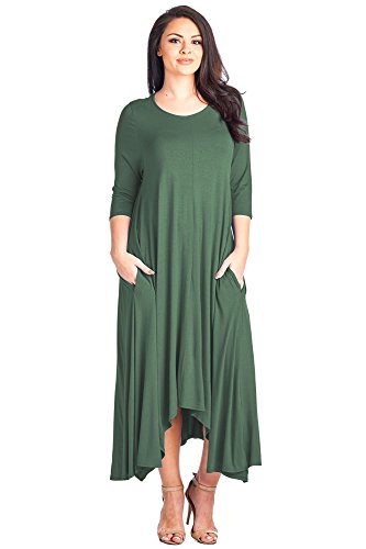 12 Ami Plus Size Solid 3/4 Sleeve Pocket Loose Maxi Dress - Made in USA