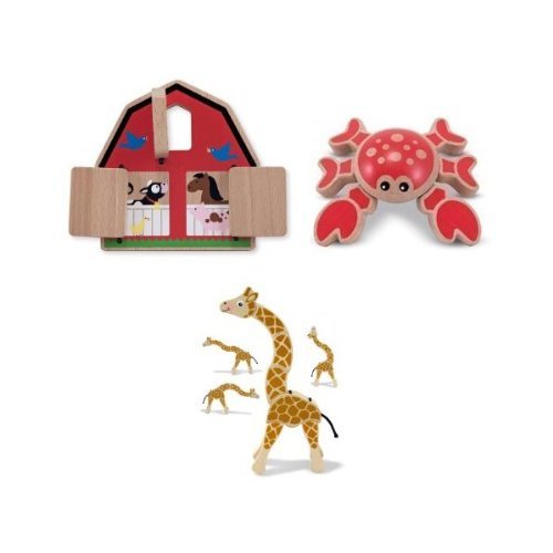4 Item Bundle: Melissa and Doug 3070 Giraffe Grasping Toy, 4035 Pee-a-Boo Barn, 4038 Twisting Crab First Play Toys + Bonus Activity Book