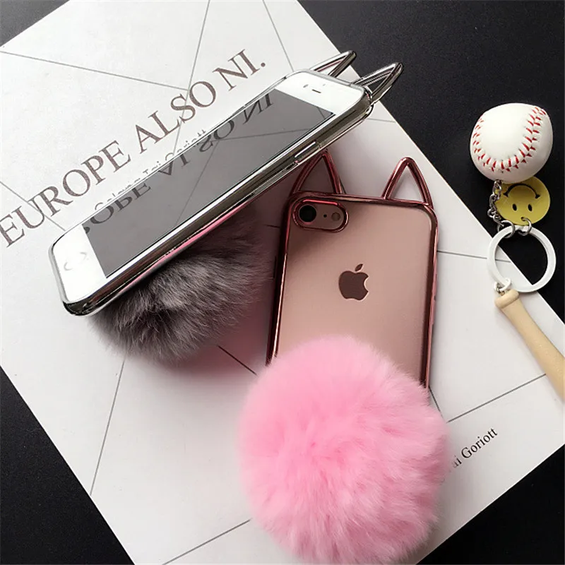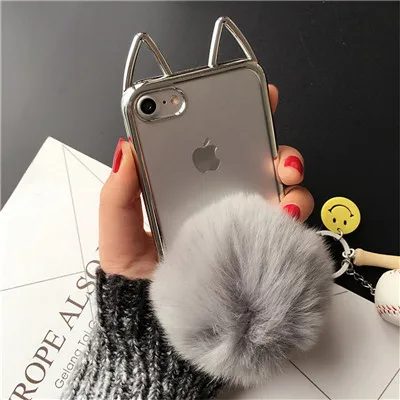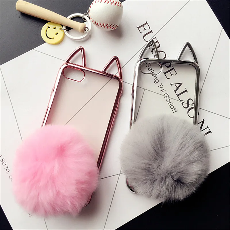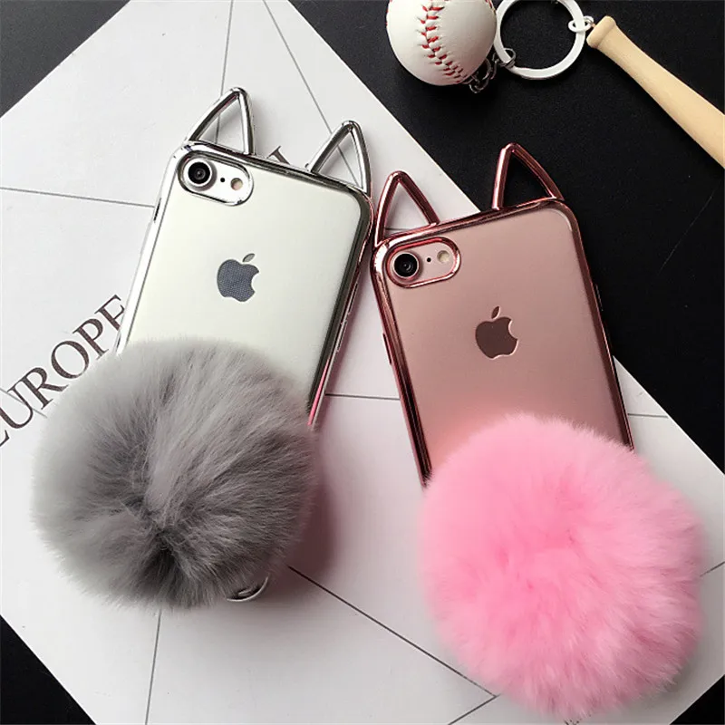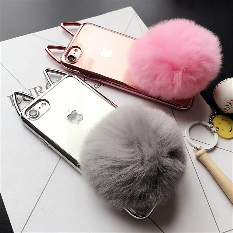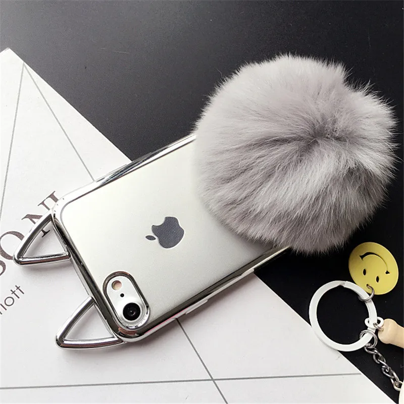 Feature:3D cute cat ear/ fur ball holder stand fashion phone cases