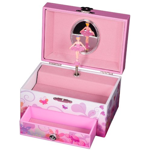 - Feature : Size: 6" x 5" x 3.5" Made of MDF Wood Plays Song "Swan Lake" Features dancing balleina figurine when lid is opened Includes bottom drawer for extra jewelry storage