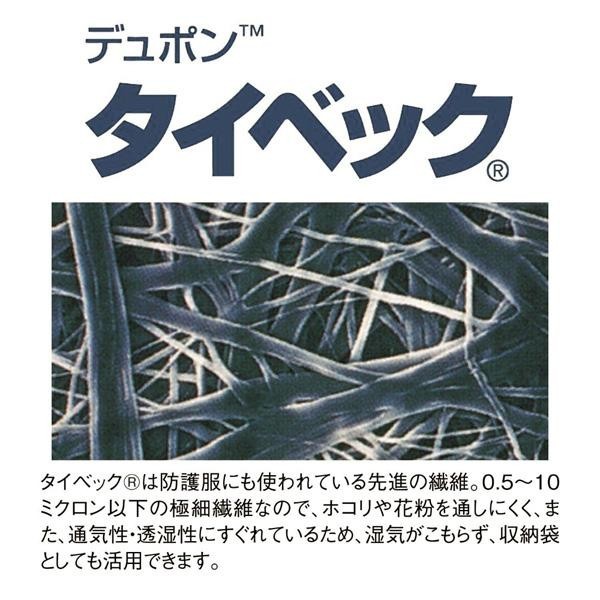 | 素材・材質 | 本体:ポリエチレン不織布(デュポンTM「タイベック(R)」使用) ファスナー:ポリエステル |