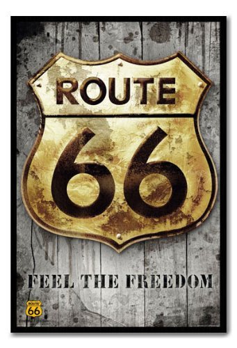 -. Title : Iposters Route 66 Usa Golden Road Sign Poster Magnetic Notice Board Black Framed - 96.5 X 66 Cms (approx 38 X 26 Inches)