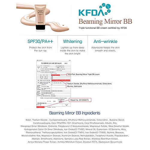 -. Feature : KOREAN COSMETICS, Helen Park Cosmetic_ Beaming Mirror BB Cream (40ml, skin tone correction, anti-wrinkle, whitening, UV protection SPF30/PA + +, moisture) [001KR] / Item location : Korea and we ship to worldwide / delivery time : It would take 14~28 day from Korea. / Note to the first users : If you have not used this item before, try the cosmetic with small amount on your skin. If you find any trouble with the product, please stop using and discuss with your skin expert or doctor. If you have any allergy or trouble with the ingredients of product, please do not use it. We recommend this product to the users who tried before and don't have any problem for using.